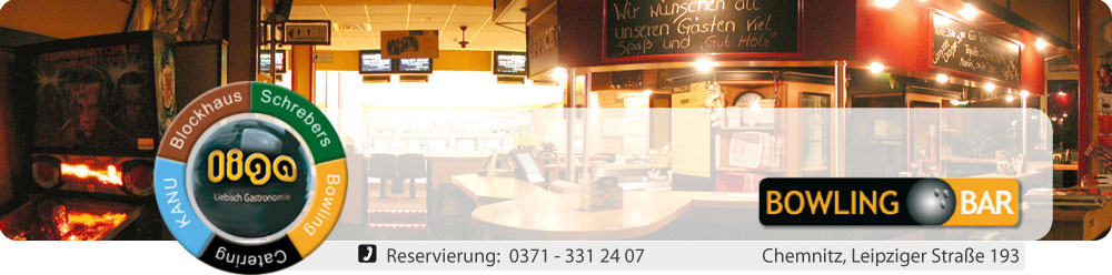 Bowlingcenter in Leipzig, Markkleeberg und Chemnitz Liebisch-Catering Wildwasserterrasse im KANU-Park Markkleeberg Schrebers in Leipzig Blockhaus im Wildpark Leipzig