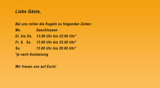 Freunde des Bowlingsports wissen, was sie hier fasziniert: Hier ist man - wenn man möchte - mal unter sich, aber auch offen gegenüber neuen Gästen und beim Spiel schnell auf Du und Du. Daher empfiehlt es sich, auch, spontan mit Freunden oder in Familie hier einzukehren.
